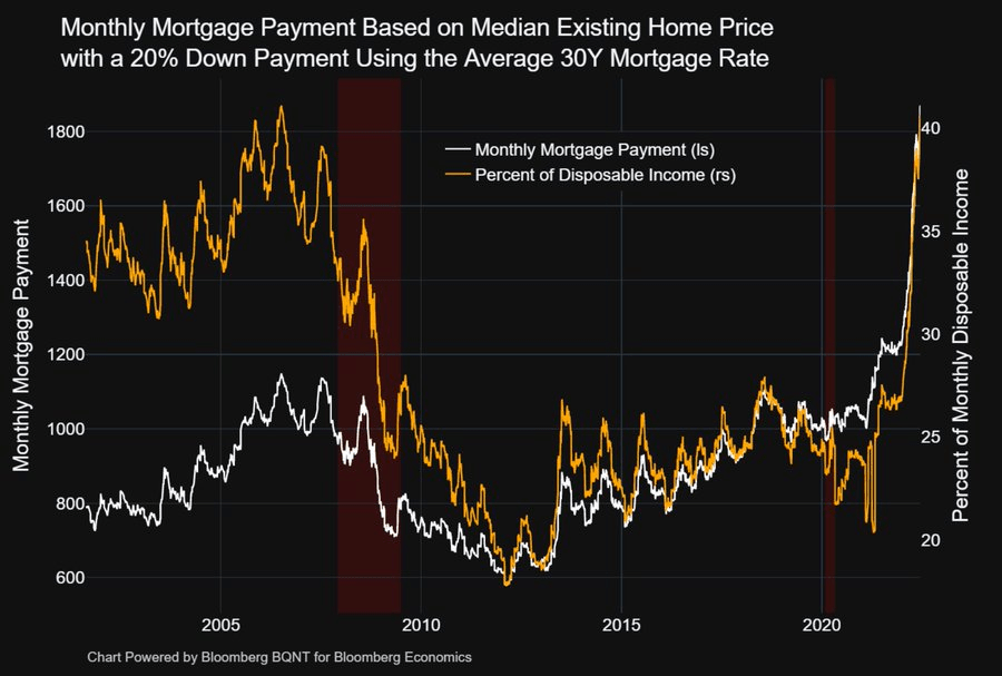 The cost to service a mortgage payment on the median American home is up ~60% in 6 months. I’m no expert, but that is BAD for residential home demand.
